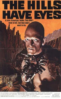 A creepy flick about a family of cannibal hicks living somewhere out in Arizona or New Mexico on a reservation beside of an Airforce bombing range. "Starring" Michael Berryman (the guy on the poster) pretty much because of the way he looks. Directed by Wes Craven- I present to you THE HILLS HAVE EYES!!!
